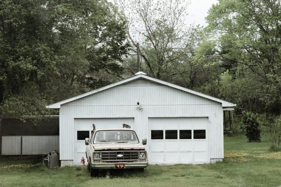During unattended operation, the door will begin to close, and if the safety sensors detect an obstruction, it will immediately reverse. Always verify the garage door’s path is clear before activating this feature. Refer to the user manual for detailed instructions on adjusting the close time and troubleshooting any issues with the safety sensors. This feature is crucial for automated and secure garage access.