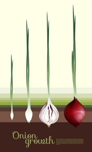 • Red Onions⁚ Red onions have a milder flavor than yellow onions and a slightly sweet taste. They are often used in salads, salsas, and other dishes where their vibrant color adds a visual appeal.